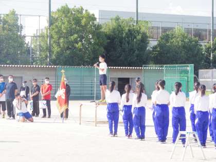 開会式では、生徒会長の挨拶や体育委員長の選手宣誓の言葉から、今年度初めて全校生徒が一堂に集うことのできた喜び、みんなで1つの行事に取り組める喜びが感じられました。