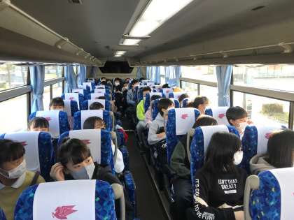 しまなみ海道を通り、生口島(いくちじま)サンセットビーチへ向かうバス内の様子です。
