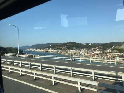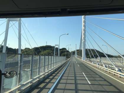 新尾道大橋のきれいな景色を眺めながらバスは進んでいます。