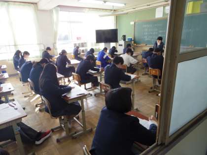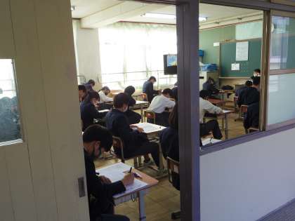 進路を控えている3年生とあって、直前まで熱心に教科書やノートを見て確認する生徒も多く、テスト中も真剣そのものでした。