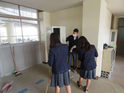 掃除ロッカーを隅々まで丁寧に拭く等、日頃は行き届かない場所まで心を込めて掃除してくれている姿が見られました。