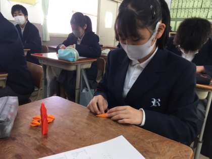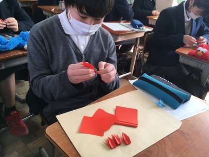 先日は悲しい戦争の歴史について学び、そして今日はそこから学んだ平和への思いを込めて、千羽鶴を作りました。
