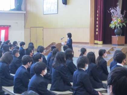新入生代表の言葉では、不安がある中ではありますが、仲間とともにがんばっていこうとする決意が語られました。