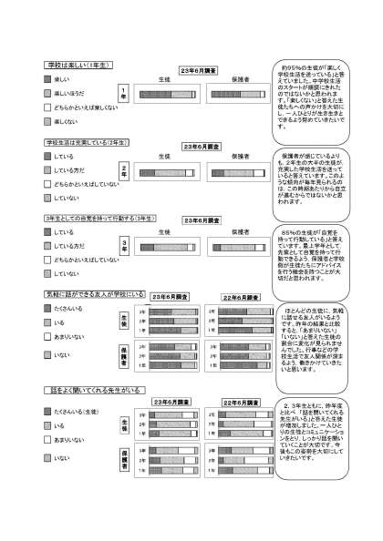 洛南だよりでお知らせしておりますが、学校評価アンケートのまとめです。
