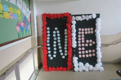 2・3年生からの温かいメッセージボードが廊下に飾られています。月曜日の朝,登校してきた1年生から歓声があがっていました。階段には『welcome!』の文字。廊下にもあります。廊下バージョンは,次回発表しますね。2・3年生の皆さん。ありがとうございました。嬉しかったです。