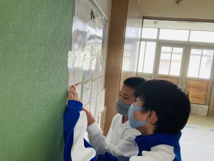 明日から6月に入ります。梅雨らしいイラストと1年生へのメッセージをお願いしたところ,アンブレラ・長靴・虹・アジサイ・・・・などなど。また,1年生へ服装・ベル席などの生活面を記事にしたポスターや6月をテーマにしたポスターなども作成してくれました。今週水・木・金は,仮入部も始まります。2・3年生が作ってくれた部活のポスターもアート係が1年生の2・3階のフロアに貼りなおしてくれました。それも見ながらどの部活に入ろうか考えてみてくださいね。みんなの縁の下の力が,1年生のPOWERとなってきていますね。ありがとう!