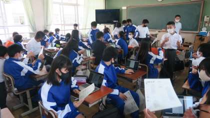 6月の生徒大会に向けて各クラス議案書が行われました。タブレットを使っていくクラスもありましたね。どのクラスも評議員の力の見せ所です。前に立ってクラスをまとめてくれていました。君たちの学校生活がより良いものになるために,いろいろ相談していました。改修や時間のかかる問題は難しいかもしれませんが,簡単なことや工夫次第でどうにかなることは,少し意見を出し合って考えてみよう!!少し密にもなりましたが,班ごとでマスクをしっかりはめて積極的に頑張る姿が印象的でした。頑張れ!1年生!