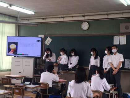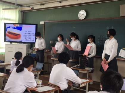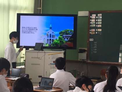 3年生は長崎調べ学習の発表を行いました。プレゼンテーションソフトを使い、各クラス、各班、短い準備期間ではありましたが、「長崎のお土産」「平和」「ハウステンボス」「歴史・文化」などのテーマについて、どの班も工夫をこらしたプレゼンテーションができていたと思います。
