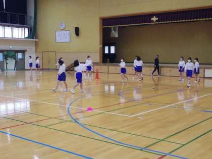 女子は、ソフトボールのゴロ捕球の動作を繰り返し練習していました。今日は、あいにくの天候で、グランドでの実戦はできませんでしたが、次の機会に今日身につけた動きを生かしていってください。