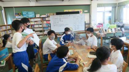 図書館では,それぞれの役割(衣・食・住)に分担して調べ学習をしています。図書館には数多くの書籍があるので,調べ放題!生徒たちもいつもと違うメンバーでの調べ学習に会話も弾んでいる様子でした。仕上がりが楽しみですね。『地理』の分野!しっかり学習を深めてくださいね。