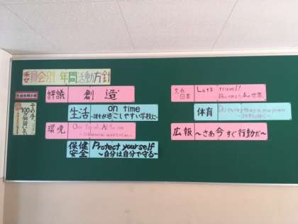 生徒大会がリモート形式で行われました。生徒会本部は、学校を引っ張るリーダーとして、洛南中学校がよりよくなるように委員会活動方針等を全校生徒に呼びかけました。コロナ禍で思うように活動できないこともありますが、全校生徒で洛南中学校を「つむぐ」。つむいでいきましょう。その先頭に3年生が立って欲しいと思います。