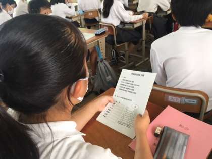 6限、3年生は修学旅行に向けて、班別研修の係に分かれて、自分の役割を確認しました。班長、学習係、ナビ係、保険美化係、それぞれ係別での確認事項を教室で共有し、いよいよ班別研修の行程などを決めていきたいと思います。