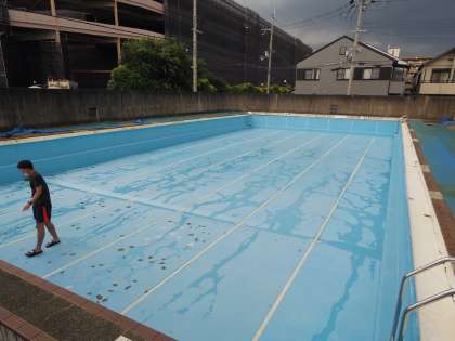 協力してくれた部活部員の活躍で、2年ぶりに使用されるプールがきれいになりました。
