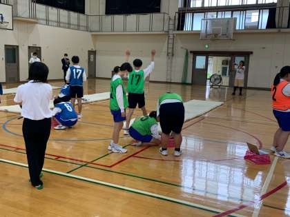 本校からは、2年生保健体育(写真・上)と、同じく2年生家庭科(写真・中)の授業が行われました。