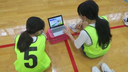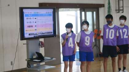 昨日は,支部の研修会のため一般生徒は下校,対象クラスの生徒は残って授業を行いました。2年生の保健体育の授業では,器械運動『開脚前転』にチャレンジ!タブレットを巧みに使いこなし,男女共修4人組のグループで教え合い・分析しながらの授業。初めはなかなか出来なかった生徒も授業が終わる時には,起き上がることができていました。発表も慣れていますね。意欲的に活動していました。ありがとう!2年生のみんな。