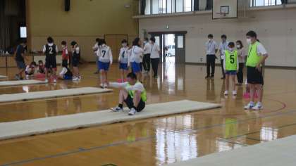男子生徒は,股関節が固くなかなか足が開かないはずですが,勢いや手のつく位置をうまく利用したり理解しながら頑張っていました