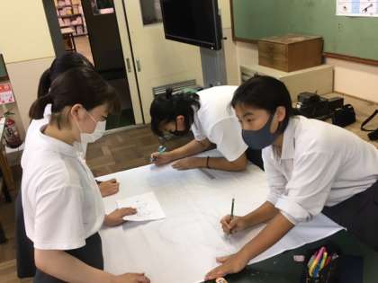 3年生は学級旗の下書きを放課後行いました。それぞれの学級目標にそって、工夫をこらしたユニークな学級旗ができそうです。色塗りは夏休み明けを予定しています。どんな学級旗ができるか、楽しみです。
