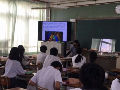 3年生は展示制作の題材になる「大浦天主堂」についての学びました。世界遺産にもなっている大浦天主堂が建てられた歴史、背景を知りました。展示(貼り絵)も一人ひとりの役割があり、そして、力を合わせて大きな作品を作ります。できあがりを楽しみにしています。