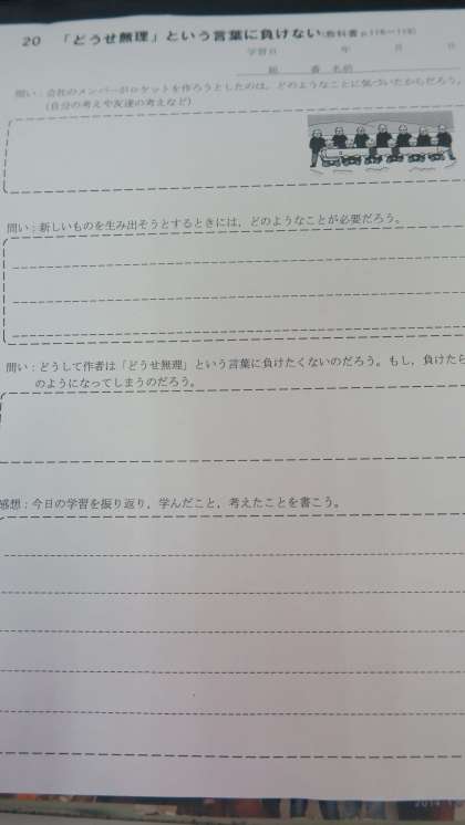 1年生 6限道徳 『どうせ無理』という言葉に負けない