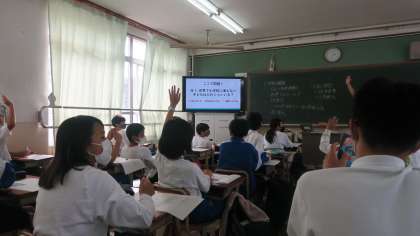 まずは知ろう!そして理解する・自分こと化する・行動する!この学年は小学校の時に調べ学習したこともあるようですね。今後の進歩が楽しみです。貧困の映像を見ながら水を汲みに行く子供たちが裸足で歩いていく様子や茶色の水を生活用水(料理など)に使っている様子を見て,現実の自分たちとのギャップを感じていると同時に大きな何かを感じたようでした。これからの総合が楽しみです。
