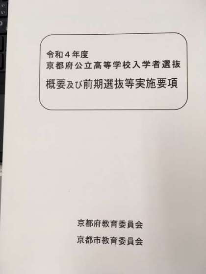 本日、3年生に「京都府公立高等学校入学者選抜要項」を配布いたしました。ご家庭でもご覧になり、進路保護者会の説明の参考にしてください。