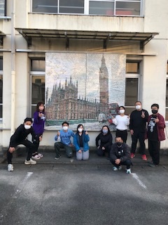 みんなのコツコツと張り合わせたものが,大作へと変貌しました。遠くから見れば見るほど美しい!また,展示委員のみんなで写真撮りましょうね!また,廊下にはSDGsのポスターが張り出されています。ホームページにも次回載せますね。楽しみにしておいてください。