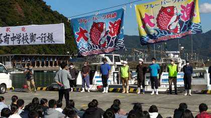 昨日から体験や宿泊でお世話になったブルーパーク阿納での退村式を行いました。
