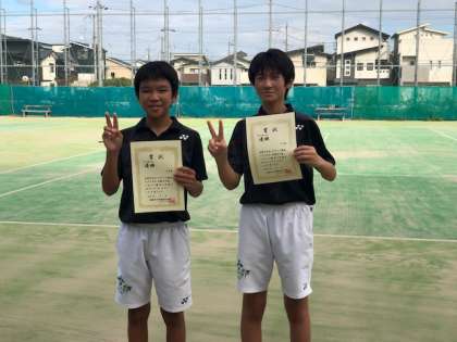 近畿中学生ソフトテニス選抜インドア大会京都市予選が,10月24日(日),31日(日)に行われ,1年生1ペアが出場しました。新人戦上級の部が中止になったため,府代表を選出する試合でしたが,他校の2年生と対戦する中,強気のプレーで1本1本勝負し,優勝することができました。次は,11月14日(日)丹波自然運動公園テニスコートで行われる,京都府新人大会に出場します。