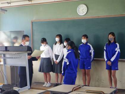 秋に行われた部活動などの大会に関する伝達表彰が行われました。