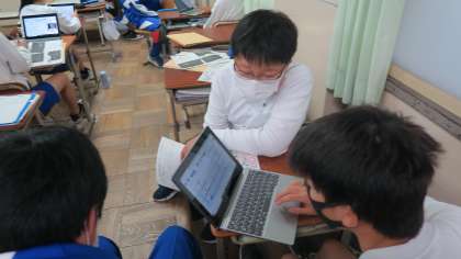 校外学習の調べ学習が,本格的に始まりました。どの神社仏閣に行くのか?拝観料は?昼食は1000円で何を食べようか・・・などなどどのクラスもワイワイガヤガヤとタブレット片手に話し合いをしていました。京都のるるぶも各班に1冊ずつ配られ楽しそうにみているクラスも多かったですね。限られた時間の中で,各クラス・各班協力して活動内容について話し合いを深めましょう!!今月末です。参加届も期限までに提出してくださいね。