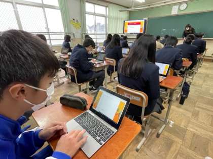 3年生は道徳の授業の振り返りを行いました。いろいろな授業で感じたことを思い出し、印象に残ったことなどを書きました。また、学校生活に関するアンケートをタブレットで行いました。タブレットでアンケートに答えることも慣れてきた様子です。