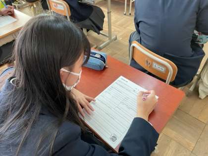 3年生は、3年間の特別活動の記録や、これから必要になる願書などの書類を入れる封筒を作成したりしました。いよいよ来週から懇談が始まり、進路決定をしていきます。自分の道を切り拓いていけるよう、のこりの2学期も頑張りましょう。
