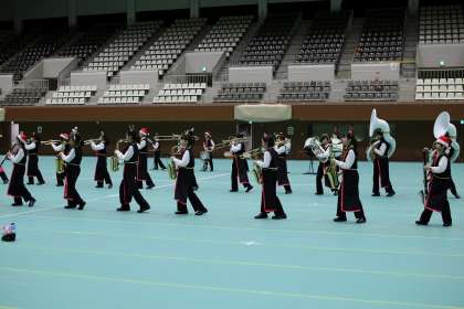 2021年12月25日(土)クリスマスの日に島津アリーナ京都で開催された「ウィンターマーチングパーティ」に本校吹奏楽部が出演させていただきました。パーティの主催である塔南高校マーチングバンドGryphonsは本校吹奏楽部の先輩たちがたくさん活躍している憧れの地元マーチングバンドです。そのパーティにご一緒させていただき、とても楽しい時間を過ごすことができました。