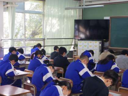 2年生は、6時間目に国語と数学の「休み明けテスト」に臨みました。