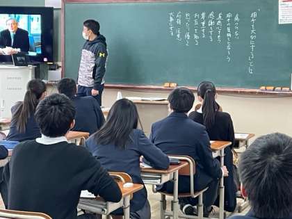 「相手を大切にすること」がテーマでした。お互いに支えて、信頼しあえることの大切さについて考えました。あと少しで卒業する3年生の仲間です。残り少ない学校生活の中でも、お互い信頼し合える関係をさらに築き上げていきたいですね。