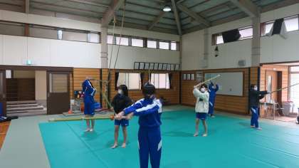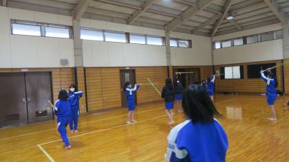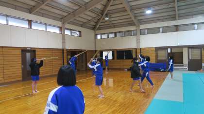 1年生の武道では,今『剣道』の授業をしています。初めての竹刀の扱いに,最初は戸惑っていた1年生女子も,作法や所作,素振り・すり足・面うちと授業を続けていくうちにどんどん上手になっていきます。今日1・2組は5時間目の剣道の授業だったので,次の実技テストに向けて,猛練習です!『メーン』の声や残心の構えも様になってきています。足が冷たいのが辛いですが・・・・生徒たちは元気に取り組んでいます。実技テストが楽しみです。