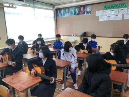 1年生 音楽 『ギターを弾いています』