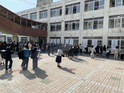 学級発表の様子です。友達と同じクラスになったでしょうか?新しい仲間との出会いです。仲良くしてください。