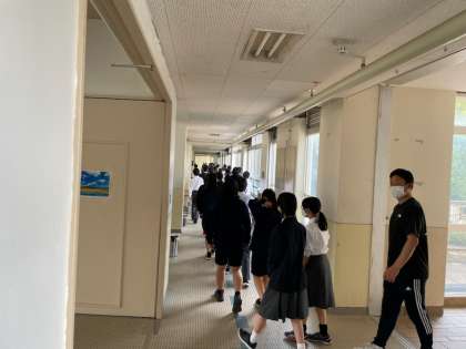 1年生は,2・3年生の教室の前を歩いて,顔合わせをしました。