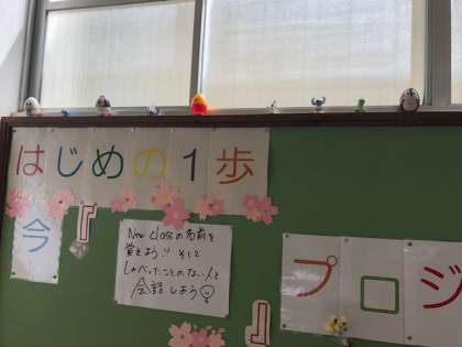 春といえば・・・・・桜や桃の節句ですが・・・外国のイベント『イースター』卵のお祭りもあります。気分だけでもイースターの装飾!!そして,今週のプロジェクトは『新しいクラスメイトの名前を覚えることと,クラス内でしゃべったことのない人と会話する』