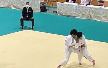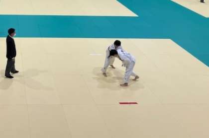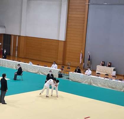トーナメント戦で行われ,負けるとその時点で終わりという,緊張感のある雰囲気でした。男女別階級ごとに試合が行われていました。感染防止対策のため,拍手のみの応援でした。