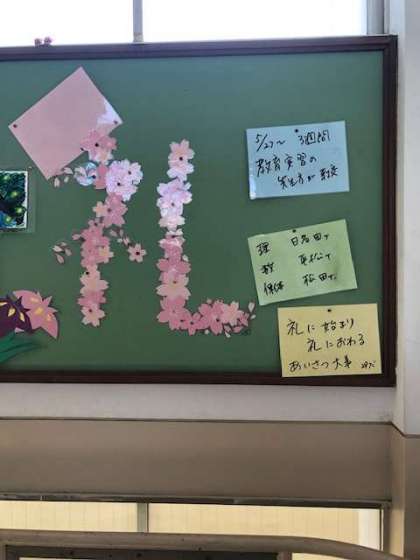 今週のテーマは3週間の教育実習生ともに学ぶこと。昨日の学年集会で自己紹介がありました。2年生には理科・数学・保健体育の3人の実習生が来校。保健体育の実習生のノートに,『元気に挨拶してくれる姿に驚きました』とそして『嬉しかった』と。