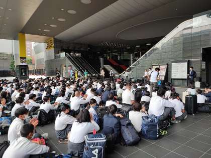 出発式の様子です。サンダーバードに乗車したでしょうか。車内での時間も仲間と楽しく過ごしてください。