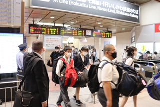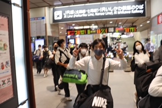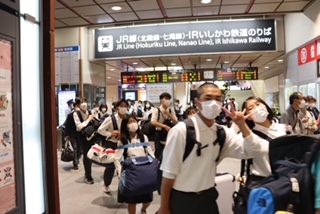 定刻通り金沢到着しました。皆さん,元気いっぱいです。この後は金沢市内の班別研修に向かいます。