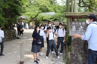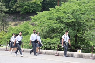 班別研修の様子です。兼六園や金沢城など金沢市内の名所を巡っています。