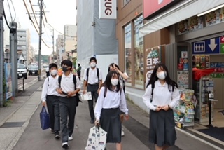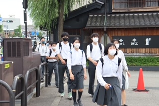班別研修の様子です。地元京都の町並みと似ているところもあるようです。