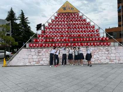 班別研修の様子です。上に何が乗っているソフトクリームでしょうか?