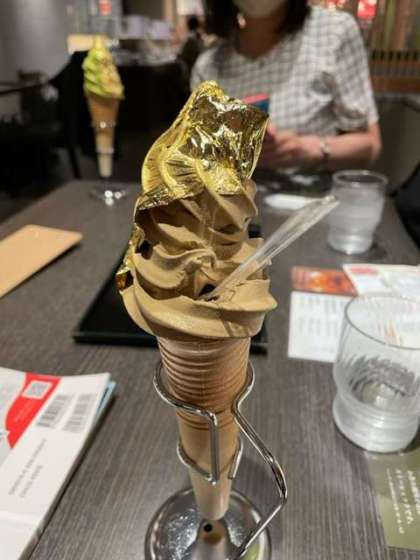 金箔のようです。豪華なソフトクリームですね。