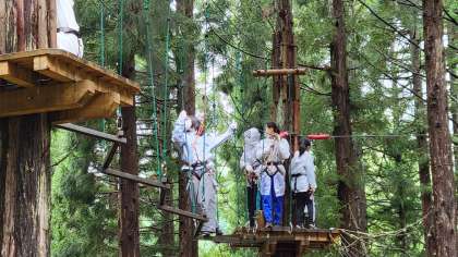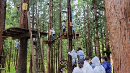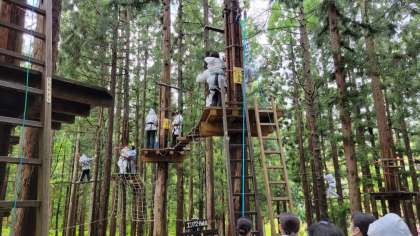 ツリーアドベンチャーの様子です。フィールドアスレチックのようなアクティビティですね。人気の高かった種目の一つです。