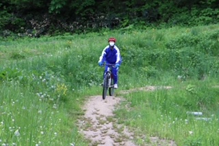 マウンテンバイク体験です。颯爽と自然の中を駆け抜けてきました。
